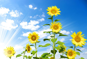 由于其生長(zhǎng)前期的幼株頂端及中期的幼嫩花盤會(huì)跟著太陽的轉(zhuǎn)動(dòng)而轉(zhuǎn)動(dòng),因而得名的。向日葵的運(yùn)動(dòng)是一種典型的向光性運(yùn)動(dòng)。旭日東升時(shí),翠綠欲滴的向日葵東側(cè)由于受到陽光照射,致使生長(zhǎng)旺盛的頂端幼莖在其背光的西側(cè)生長(zhǎng)素分布較多。這側(cè)的細(xì)胞縱向伸長(zhǎng)生長(zhǎng)得快,結(jié)果使得幼莖朝向生長(zhǎng)慢的東側(cè)彎曲,即向日葵頂端(花盤)早晨向東彎曲。隨著太陽在空中的移動(dòng),改變光照方向,向日葵頂端(花盤)也不斷改變方向,中午直立,下午向西彎曲,向日葵也在跟隨著太陽的東升西落而運(yùn)動(dòng)。