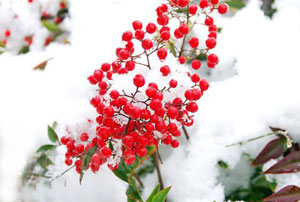 我國(guó)南方常見(jiàn)的木本花卉種類(lèi)。株高約2m。直立,少分枝。老莖淺褐色,幼枝紅色。葉對(duì)生,2-3回奇數(shù)羽狀復(fù)葉,小葉橢圓狀披針形。圓錐花序頂生;花小,白色;漿果球形,熟時(shí)鮮紅色,偶有黃色。南天竹由于其植株優(yōu)美,果實(shí)鮮艷,對(duì)環(huán)境的適應(yīng)性強(qiáng),因此近幾年常常出現(xiàn)在園林應(yīng)用中。它樹(shù)姿秀麗,翠綠扶疏。紅果累累,圓潤(rùn)光潔,是常用的觀葉、觀果植物,無(wú)論地栽、盆栽還是制作盆景,都具有很高的觀賞價(jià)值。