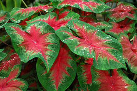 五彩芋葉片色澤美麗,變種極多,適于溫室栽培觀賞,夏季是五彩芋的主要觀賞期,葉子的斑斕色彩充滿著涼意。5-9月是它的旺盛生長(zhǎng)期。