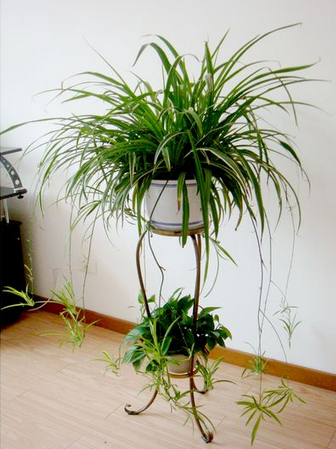 百合科常綠宿根草本花卉,葉叢生,有黃白色條紋。夏秋之際,從葉間抽出細長柔韌的匍匐枝,頂端,結節(jié)處都會萌發(fā)嫩葉、氣生根,開白花。可盆栽土培,也可在室內水養(yǎng),管理非常簡單。