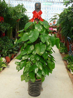 綠蘿是非常優(yōu)良的室內(nèi)裝飾植物之一,攀藤觀葉花卉。蘿莖細軟,葉片嬌秀。在家具的柜頂上高置套盆,任其蔓莖...