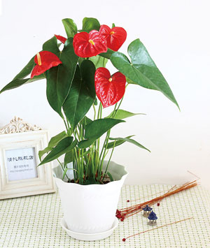 葉子和枝莖外形奇特:其葉顏色深綠,心形,厚實(shí)堅(jiān)韌,花蕊長(zhǎng)而尖,有鮮紅色、白色或者綠色,周圍是紅色、粉...