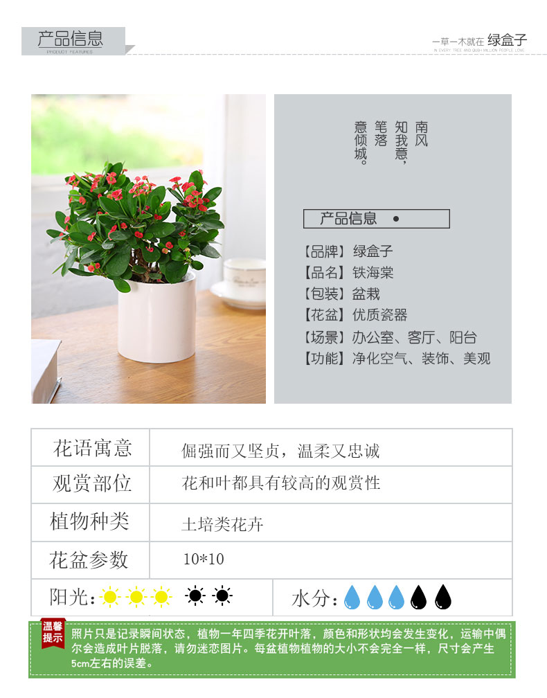 當(dāng)前位置:首頁(yè) - 綠植銷(xiāo)售 - 觀賞花卉 - 鐵海棠小盆栽